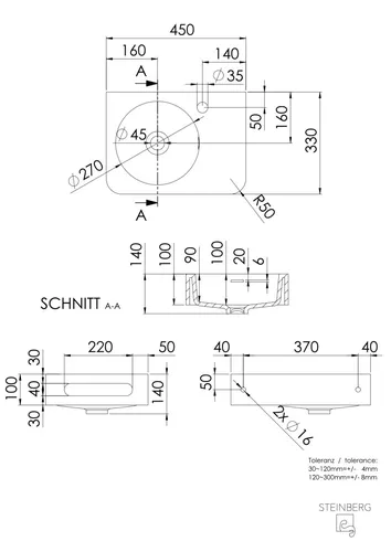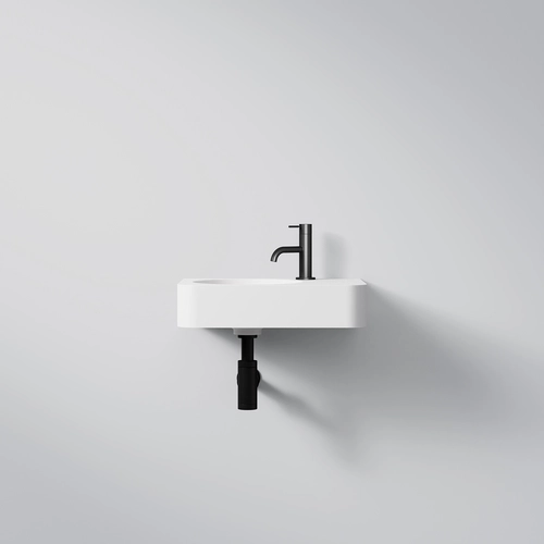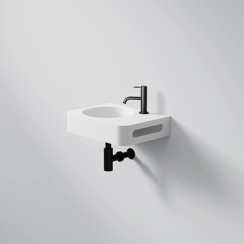 Lavabo a parete Steinberg Serie 449, 450x330 mm, portasciugamani a destra, SOLIDSurface, 1 foro per rubinetto, con sfioratore