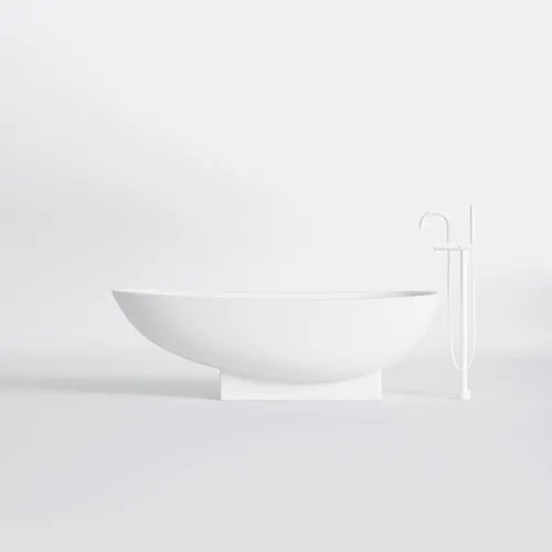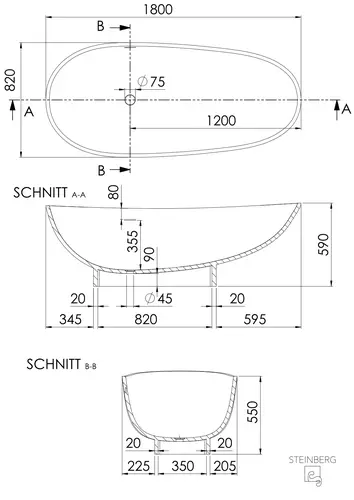 Steinberg Serie 490 Badewanne, freistehend, oval, 1800x820mm, SOLIDSurface, Mattweiß