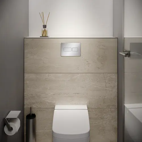 Die Möglichkeit, die TECEsolid Drückerplatte sowohl von vorne als auch von oben zu betätigen, erhöht die Flexibilität und Benutzerfreundlichkeit. Dies ist besonders praktisch, wenn die Platzverhältnisse im Badezimmer eingeschränkt sind oder spezielle Installationsanforderungen vorliegen.