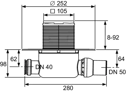 - Sperrwasserhöhe = 50 mm (gem. EN 1253)