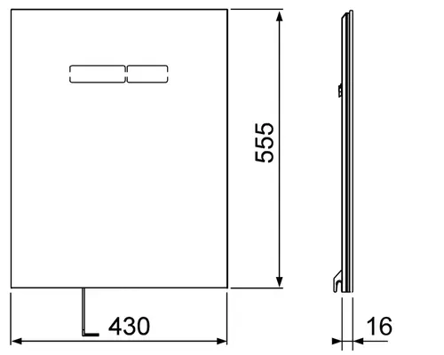 Mit den Maßen von 430 x 555 x 16 mm fügt sich die Drückerplatte harmonisch in jedes Badezimmerdesign ein. Ihr schlankes Profil und die klare Linienführung sprechen für einen minimalistischen und modernen Stil.