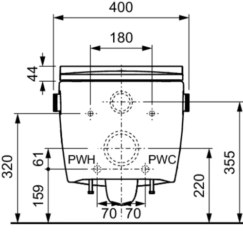 - Verhinderung von "Überspritzen", z. B. bei Kleinkindern, dank Verlängerung des Sitzes vorne innen.