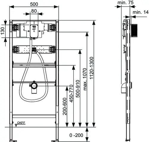 - stufenlos höhenverstellbarem Abwasseranschluss