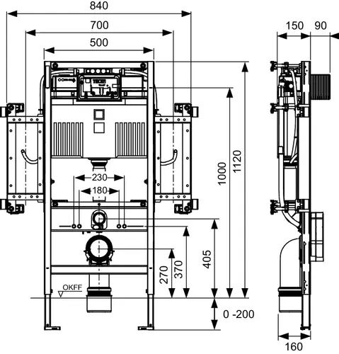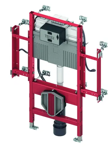 Das TECEprofil WC-Gerontomodul ist mit einem robusten und selbsttragenden Rahmen ausgestattet, der eine einfache und sichere Installation ermöglicht. Die seitlichen Stahlrahmen und Leerrohre zur Kabelführung bieten die perfekte Grundlage für den Anschluss elektronischer Dusch-WCs.