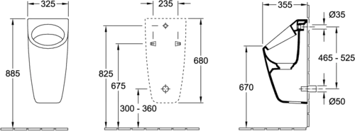 Villeroy & Boch Architectura Absaug-Urinal, oval, Ablauf verdeckt, 325x680x355mm