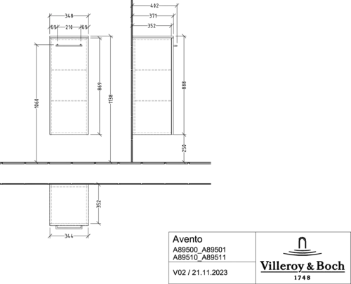Villeroy & Boch Avento Seitenschrank, 1 Tür, Anschlag links, 350x890x405mm, Griff Chrome Glanz