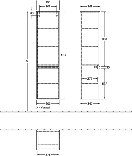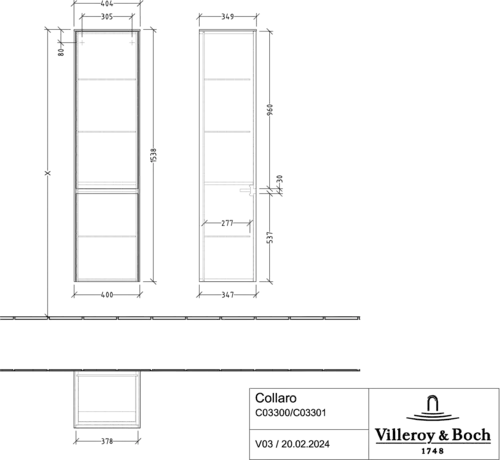 Villeroy & Boch Collaro Hochschrank, 2 Türen, Anschlag links, 404x1538x349mm