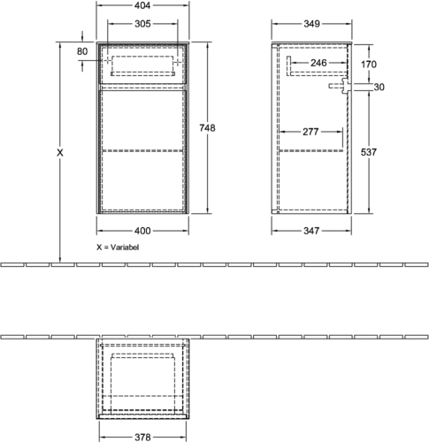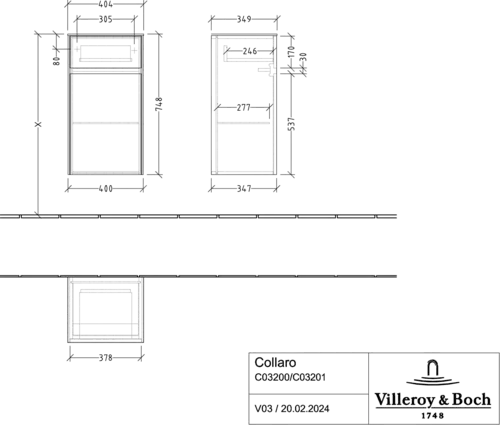 Villeroy & Boch Collaro Seitenschrank 1 Tür, Anschlag rechts, 1 Auszug, 404x748x349mm