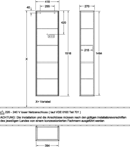 • Maße: 418 x 1516 x 270 mm