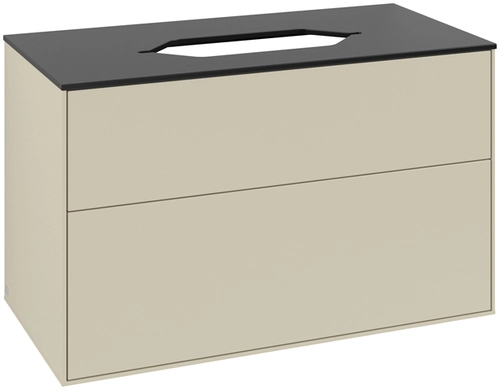 Villeroy & Boch Finion Waschtischunterschrank, 2 Auszüge, Waschbecken mittig, ohne Hahnloch, 1000x603x501mm, Glass Black Matt