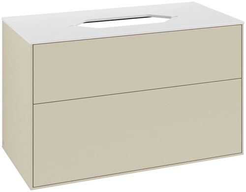Villeroy & Boch Finion Waschtischunterschrank, 2 Auszüge, Waschbecken mittig, ohne Hahnloch, 1000x603x501mm, Glass White Matt