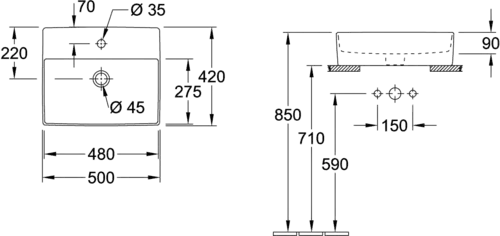Villeroy & Boch Memento 2.0 Aufsatzwaschbecken, 1 Hahnloch, ohne Überlauf, ungeschliffen, 500x420mm