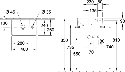 Villeroy & Boch Memento 2.0 Handwaschbecken, 1 Hahnloch, ohne Überlauf, geschliffen, 400x260mm