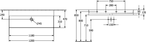 Lavabo a parete Villeroy & Boch Memento 2.0, senza foro per rubinetto, senza sfioratore, non lucidato, 1200x470mm