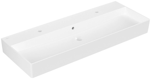Villeroy & Boch Memento 2.0 Wandwaschbecken, 2 Hahnlöcher, mit Überlauf, ungeschliffen, 1200x470mm