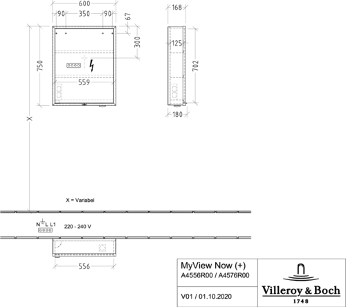 Armario con espejos My View Now de Villeroy & Boch, 1 puerta, abatible a la derecha, con iluminación, con interruptor de encendido/apagado, compatible con Smart Home, 600x750x168mm