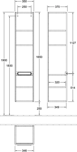 Villeroy & Boch Subway 2.0 Hochschrank , 2 Türen, Anschlag rechts, 350x1650x370mm