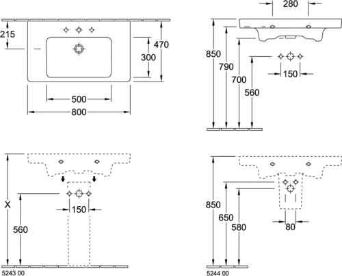 Villeroy & Boch Subway 2.0 Schrankwaschtisch, für 3-Loch Armaturen, mit Überlauf, 800x470mm