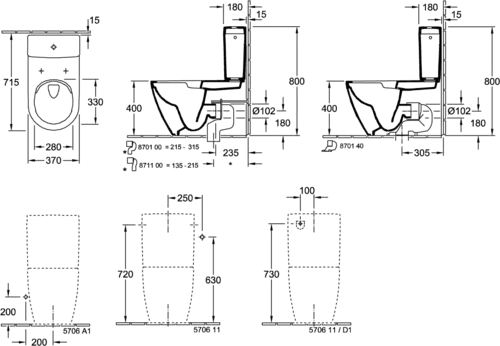Villeroy & Boch Subway 2.0 Tiefspül-WC spülrandlos für Kombination, oval, bodenstehend, DirectFlush, 370x700x400mm