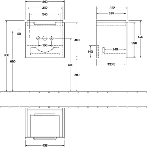 Villeroy & Boch Subway 2.0 Waschtischunterschrank, 1 Auszug, Waschbecken mittig, 440x420x352mm
