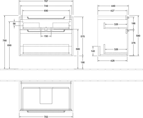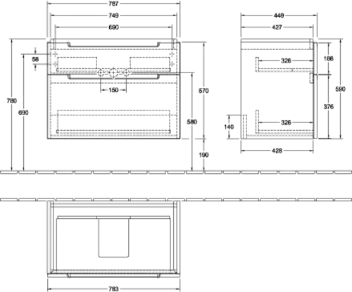 Villeroy & Boch Subway 2.0 Waschtischunterschrank, 2 Auszüge, Waschbecken mittig, 787x590x449mm