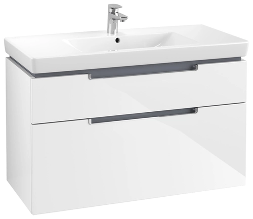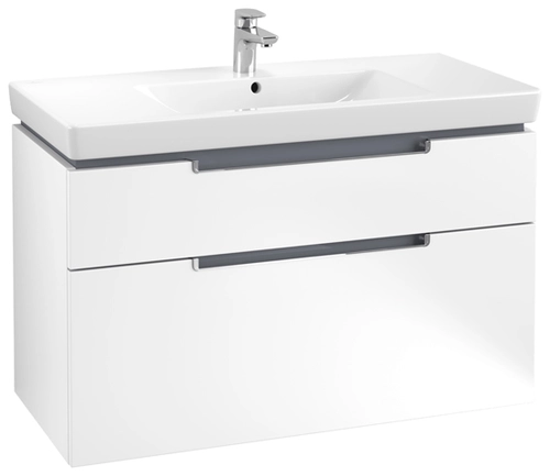 Villeroy & Boch Subway 2.0 Waschtischunterschrank, 2 Auszüge, Waschbecken mittig, 987x590x449mm