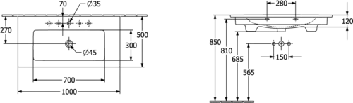 Villeroy & Boch Venticello Schrankwaschtisch, 1 Hahnloch, mit Überlauf, 1000x500mm