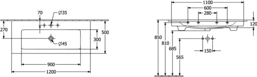 Villeroy & Boch Venticello Schrankwaschtisch, 1 Hahnloch, mit Überlauf, 1200x500mm