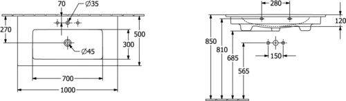 Villeroy & Boch Venticello Schrankwaschtisch, 1000x500mm, ohne Hahnloch, mit Überlauf