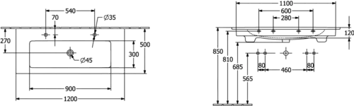 Villeroy & Boch Venticello Schrankwaschtisch, 2 Hahnlöcher, mit Überlauf, 1200x500mm