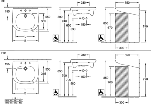 Villeroy & Boch ViCare Waschtisch, 1 Hahnloch, mit Überlauf, ungeschliffen, 610x550mm