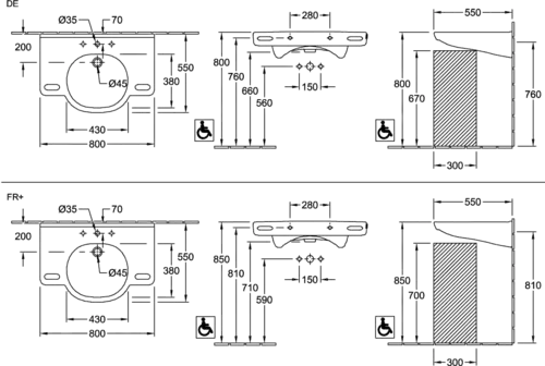 Villeroy & Boch ViCare Waschtisch, 1 Hahnloch, mit Überlauf, ungeschliffen, 800x550mm