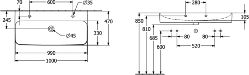 Villeroy & Boch Finion wastafels, zonder overloop, 2 kraangaten, 1000x470mm